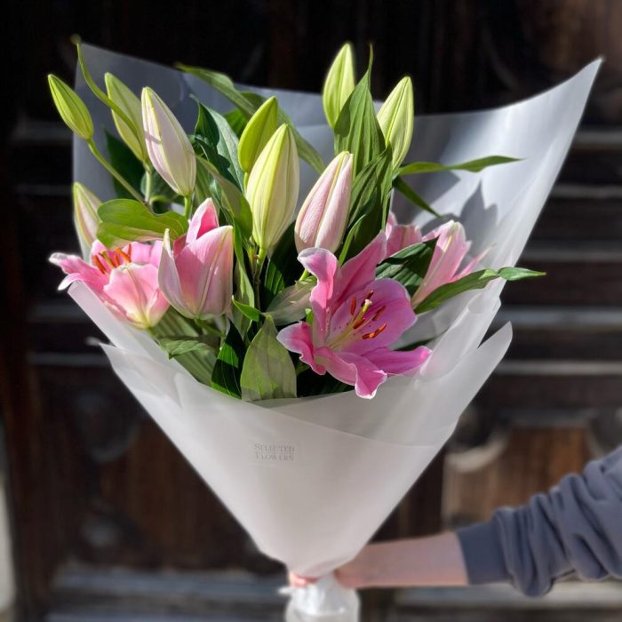 Лилия розовая – 3 шт.Дизайнерская упаковка – 1 шт.