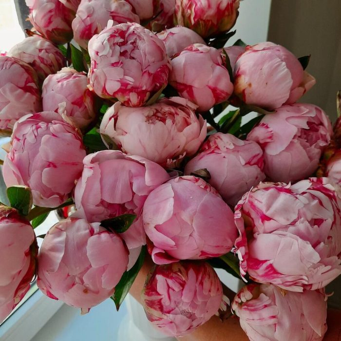 Пион Сара Бернар – 21 шт.Лента атласная – 1 шт.