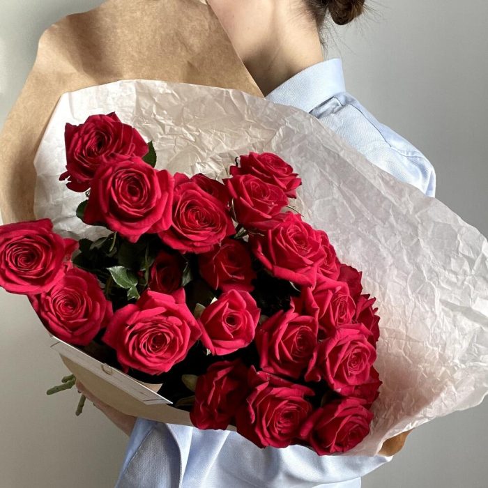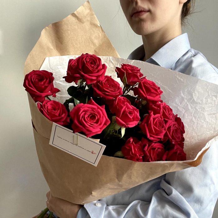 Красная кустовая роза – 5 шт.Крафт упаковка – 1 шт.