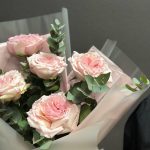 Эвкалипт – 2 шт.Лента атласная – 1 шт.Тишью – 2 шт.Пленка дизайнерская – 2 шт.роза пинк охара(ароматная) – 5 шт.