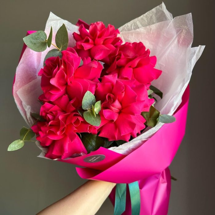 Французская роза – 5 шт. Эвкалипт – 1 шт. Упаковка дизайнерская – 1 шт.