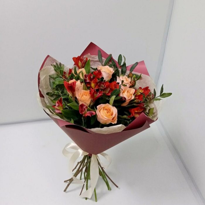 Букет из роз и Альстромерии