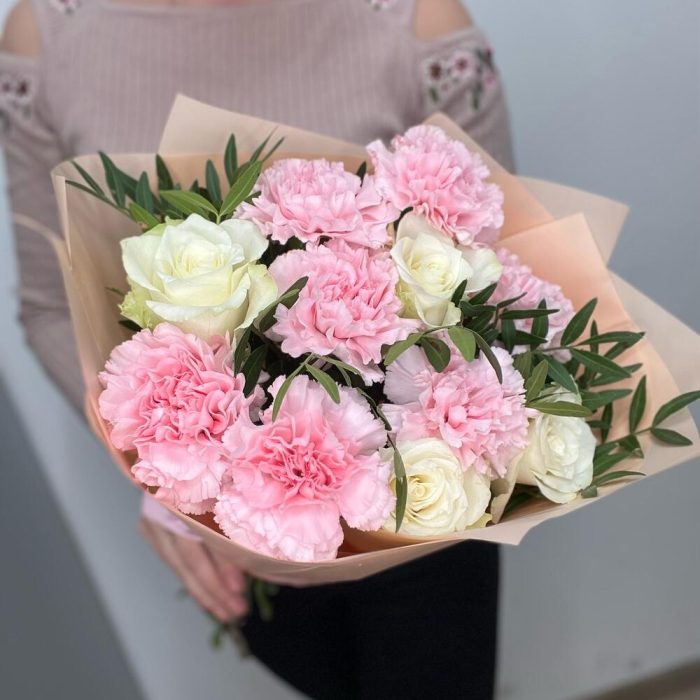 Гвоздики, Кустовые розы, Лизиантусы, Пионовидные розы, Розы