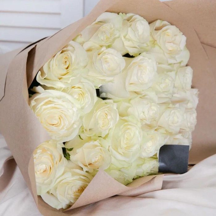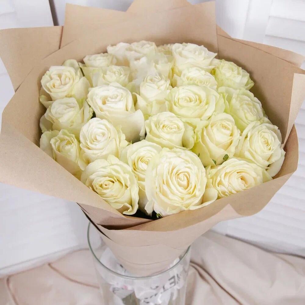 Букет белых роз 25 штук 60 см