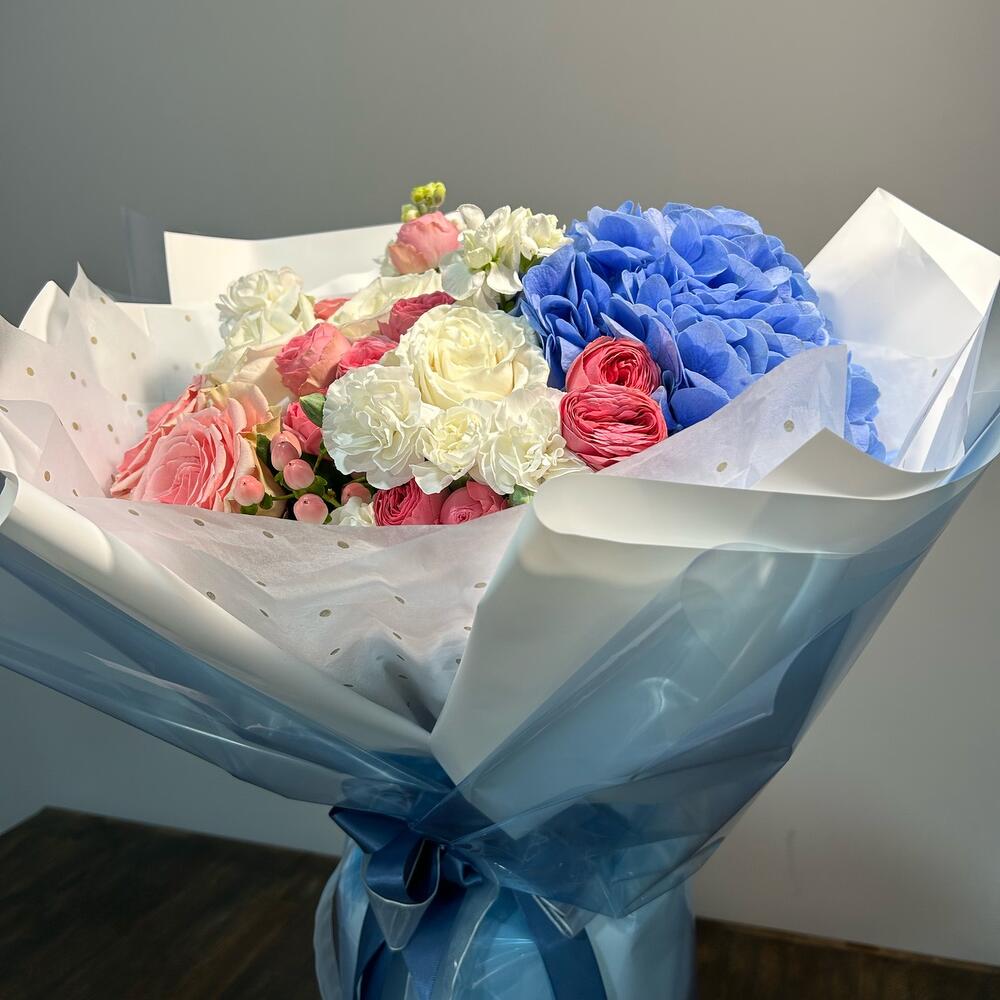 Гвоздики, Кустовые розы, Лизиантусы, Пионовидные розы, Розы