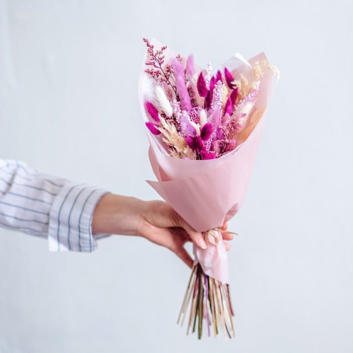 Букет из сухоцветов в розово-лиловых тонах