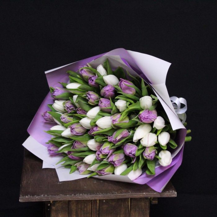 mono bouquet 49 из 51 тюльпана микс сортов double price и Royal Virgin